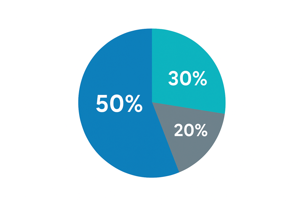 50 pour les besoins essentiels. 30 pour les envies raisonnables. 20 pour l’épargne et le remboursement de dettes prioritaires.